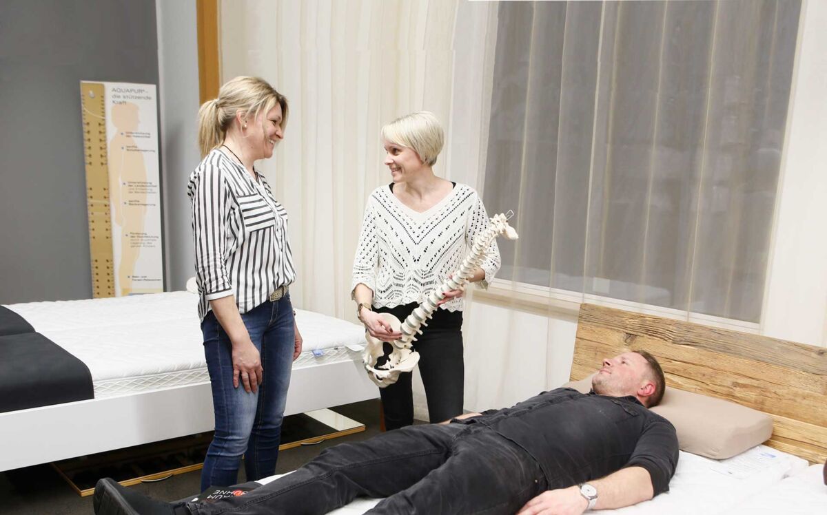 Durch die gemeinsame Analyse können wir die beste Matratze für Sie ermitteln. Dieser Prozess sichert eine gute Kaufentscheidung ab und führt Kunden aus ganz Bayern zu uns nach Dasing. Auch Physiotherapeuten und Ärzte aus der Region empfehlen unsere Fachberatung.